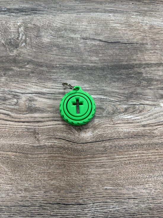 A quiet moment of calm you can carry with you. This 3D printed spinning fidget cross keychain features a smooth, silent rotating center designed for gentle, stress-relieving fidgeting without clicks or noise.